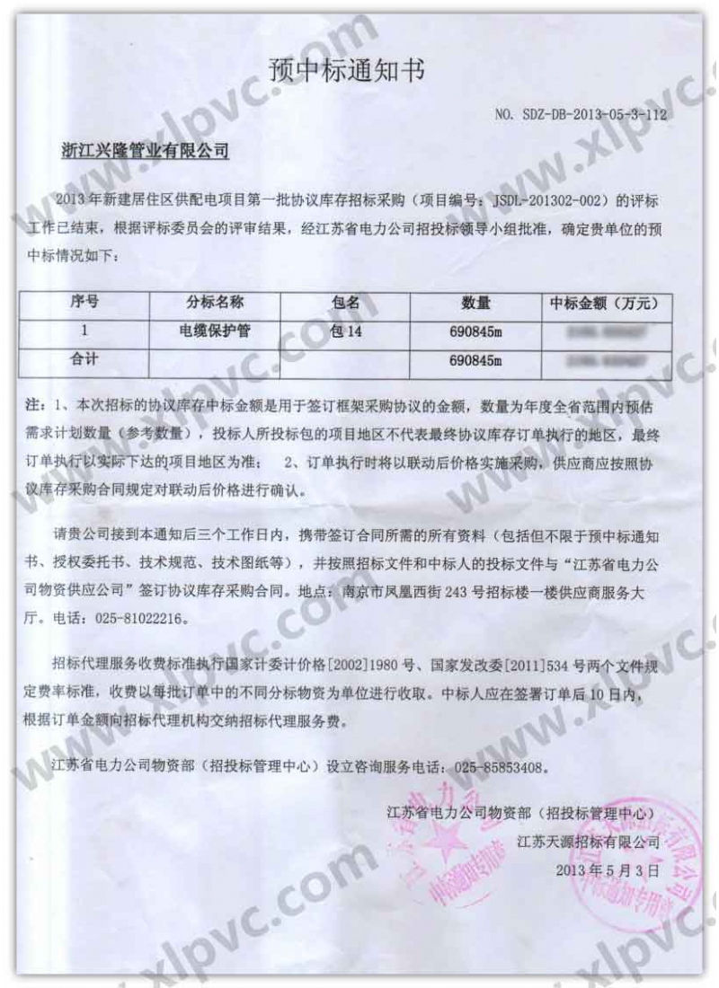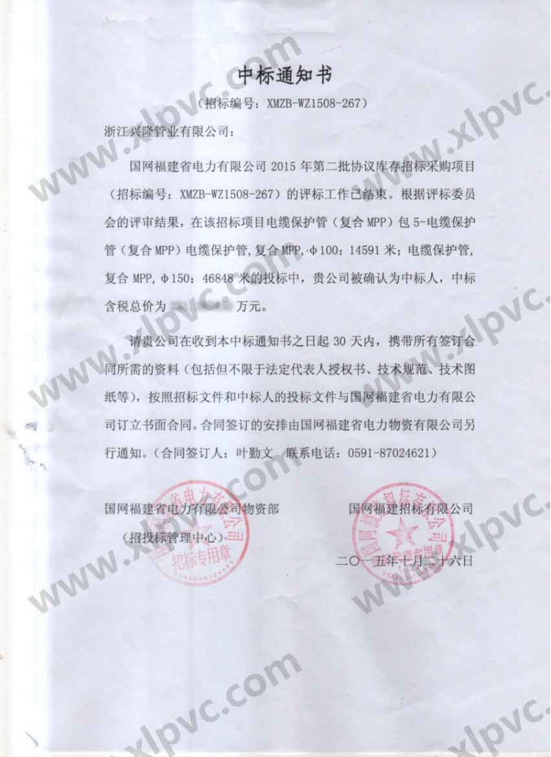 中標(biāo)通知書